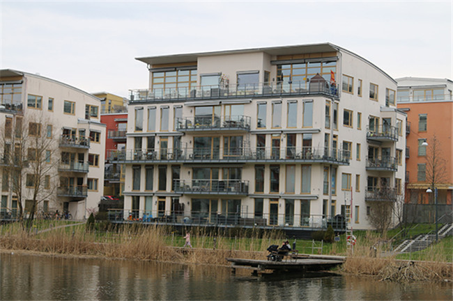 在建筑層高的設(shè)計上,為了充分利用太陽能,保證建筑采光時長,哈默比湖生態(tài)城絕大部分為5-8層的低層建筑。據(jù)介紹,哈默比湖生態(tài)城的低層建筑全年都有陽光照入,哪怕到了12月份日照時間僅有6個小時,也能保證充足的日照。更為訝異的是,建筑的基礎(chǔ)部分大多是1910-1920期間建造的,差不多一百年的歷史。
