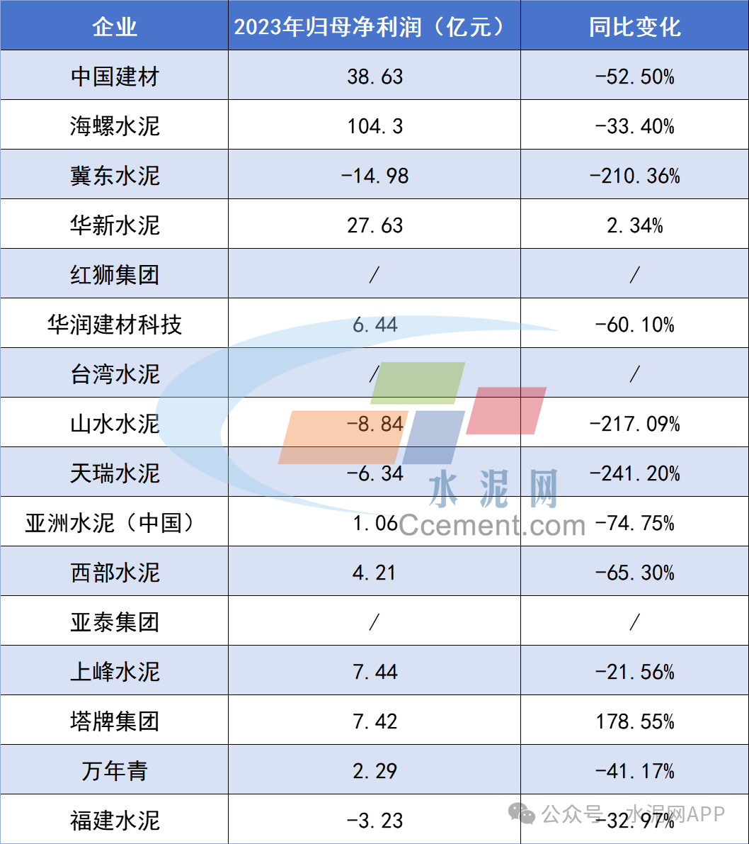 圖:2023年部分水泥企業(yè)利潤(rùn)表
