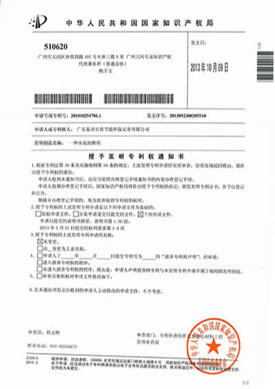 2013年10月9日,基業(yè)長(zhǎng)青收到了由中國(guó)知識(shí)產(chǎn)權(quán)局下達(dá)的授予廣東基業(yè)長(zhǎng)青節(jié)能環(huán)保實(shí)業(yè)有限公司發(fā)明專利權(quán)的通知書(shū),這表示,基業(yè)長(zhǎng)青申報(bào)的水泥助磨劑獲得國(guó)家發(fā)明專利,專利權(quán)號(hào):201010254786.1。