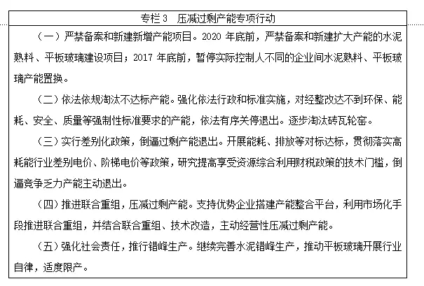 “轉(zhuǎn)型、創(chuàng)新、綠色、融合、開(kāi)放是建材業(yè)轉(zhuǎn)型升級(jí)的5個(gè)關(guān)鍵詞。”工信部規(guī)劃司相關(guān)負(fù)責(zé)人指出,轉(zhuǎn)型的重點(diǎn)是遏制產(chǎn)能過(guò)剩行業(yè),支持先進(jìn)無(wú)機(jī)非金屬材料等新興產(chǎn)業(yè);創(chuàng)新的重點(diǎn)是加快新產(chǎn)品研發(fā)與應(yīng)用進(jìn)程,增強(qiáng)自主創(chuàng)新和品牌建設(shè)能力;綠色的重點(diǎn)是促進(jìn)建材工業(yè)向綠色功能產(chǎn)業(yè)轉(zhuǎn)變;融合的重點(diǎn)是促進(jìn)信息技術(shù)與建材工業(yè)深度融合,加快建材工業(yè)由生產(chǎn)型制造向服務(wù)型制造轉(zhuǎn)變;開(kāi)放的重點(diǎn)是利用好國(guó)內(nèi)外兩個(gè)市場(chǎng)和資源,加快產(chǎn)業(yè)全球布局和國(guó)際交流合作,形成新的比較優(yōu)勢(shì)。這五個(gè)關(guān)鍵詞也是《規(guī)劃》的五項(xiàng)重要任務(wù)。其中,在加快結(jié)構(gòu)優(yōu)化任務(wù)中,一方面,工信部將開(kāi)展專(zhuān)項(xiàng)行動(dòng),大力壓減水泥、平板玻璃等傳統(tǒng)建材行業(yè)嚴(yán)重過(guò)剩產(chǎn)能。在2020年底前,嚴(yán)禁備案和新建擴(kuò)大產(chǎn)能的水泥熟料、平板玻璃建設(shè)項(xiàng)目;2017年底前,暫停實(shí)際控制人不同的企業(yè)間水泥熟料、平板玻璃產(chǎn)能置換。另一方面,是壯大建材新興產(chǎn)業(yè),重點(diǎn)是加快開(kāi)發(fā)先進(jìn)無(wú)機(jī)非金屬材料,發(fā)展玻璃基材料、工業(yè)陶瓷、人工晶體、礦物功能材料、高性能無(wú)機(jī)纖維及復(fù)合材料,鼓勵(lì)發(fā)展石墨烯等前沿材料。
