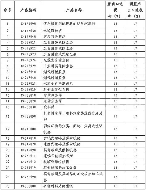 提高增值稅出口退稅率的商品清單(涉及建材機械行業(yè))